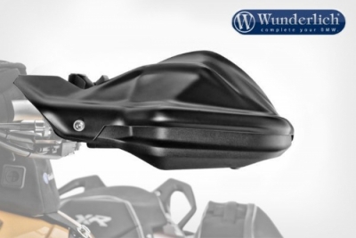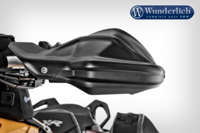 From solid-colour ABS plastic. Simply bolted to the hand guards. Delivery as complete set (left and right),