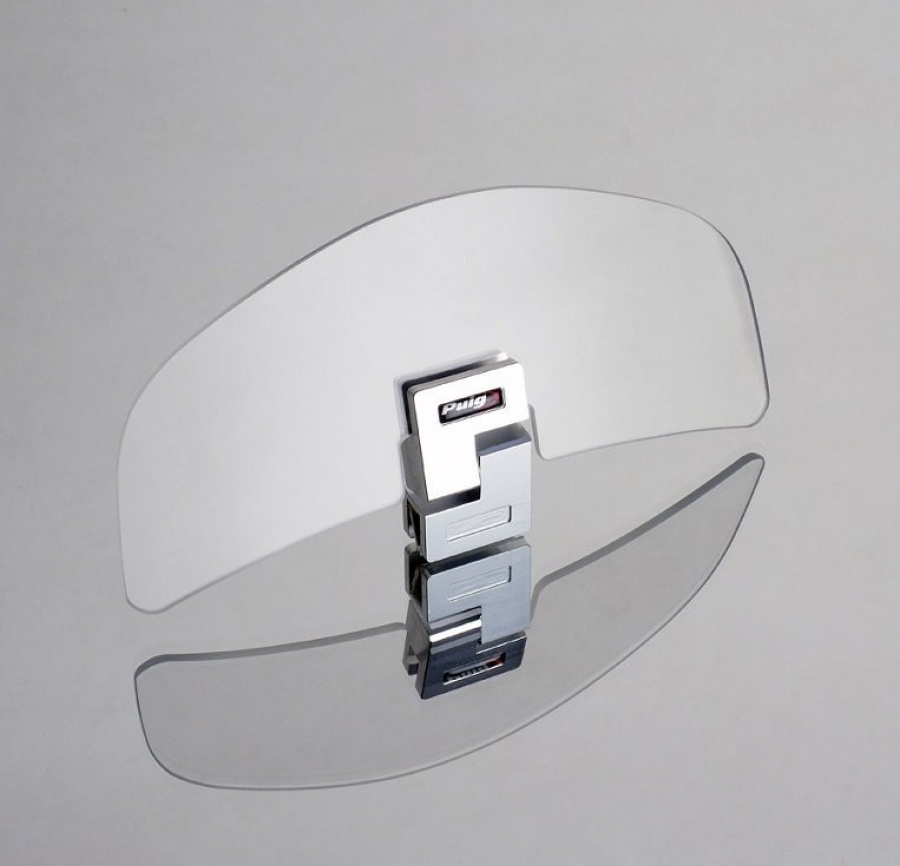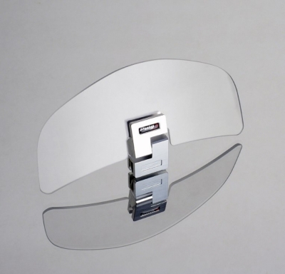 Ronde onderkant. Het aluminium deel schuift over de originele ruit, en word vastgezet met 2 schroeven. Het opzetruitje is verstelbaar. Afmeting: 191 x 92mm
