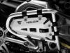 The system consists of two solid guards in Peralluman 6 mm. with additional internal coating foam rubber 20 mm. of thickness attached to the original crashbars with very sturdy stainless steel brackets with anti-vibration rubber coating. It applies without modification and without removing other parts of the bike.