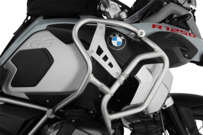 Our tank protection bar extension completes the protection for the flanks of the Adventure, reinforcing and perfecting it. This addition to the tight series standard tank protection bar on the R 1250 GS Adventure not only reliably protects the tank but the body too. It also gives the Adventure a striking and unique look.