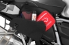 These two functional DRYBAG side bags are tailored for our frame covers 20800-202 and 20800-602. They can be securely attached or removed in a flash using the LOXX quick releases on the inside. The bags consist of perfectly crafted CORDURA® 500, which is laminated on the inside with a waterproof layer of durable TPU. All seams and duplications are stitched to be waterproof. The cover flap, which also covers the waterproof and dustproof zippers and fastens with two high-quality clips, also ensures they are water-tight. They offer additional space for everything you need to hand, e.g. tools or bandages. The attachment close to the centre of gravity is particularly favourable for neutral riding behaviour. Especially in off-road use. No restriction of freedom of mobility for the rider and passenger. The functional, puristic design integrates perfectly into and completes the look of your GS, making it look as if it were cast from a single mould.