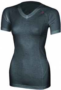 ThermoºCool® DAMES shirt met V-hals en korte mouwen. kleur: DARK GREY.