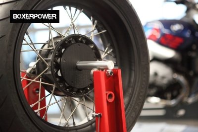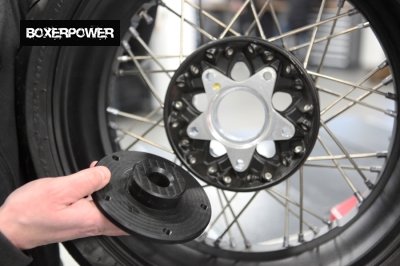 Onmisbaar als je zelf je wielen wil uitlijnen / balanceren.The hub of the rear wheel rim has a diameter for which there are no standard axle attachment points for balancing. Now there is! Our balance adapter sits snugly inside the wheel hub, centres it and screws onto the flange of the rim at five points. This means the 25 mm axles of all standard balancers or balancing stands can accommodate the rear wheel safely and without clearance. We include a matching axle (Ø 25 mm, length 420 mm) with our balance adapter.