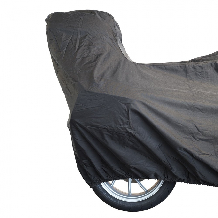 Motorhoes model Alfa maat XL (outdoor) Luxe uitvoering for BMW R1250GS en GSA, R1200GS of GSA, en andere modellen van BMW, zoals de 1000XR, F-serie GS en GSA. Ook passend voor de R1250RT, R1200RT LC, K1600 GT. Luxe ventilerende motorhoes met onder andere een zachte katoenvoering.
