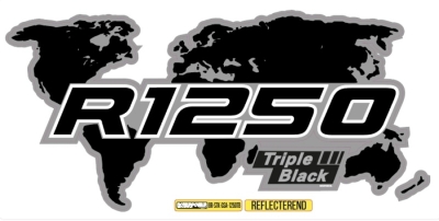 • Reflecterende wereldkaart sticker, in de BMW GS GSA Triple Black kleuren. BMW R1250GS/GSA Adventure Triple Black Exclusive Koffersticker Wereld kaart.