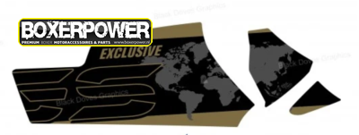 Cardan beschermingssticker / protectiesticker in de kleuren van BMW R1250 GSA Exclusive, met GS logo in outline en wereldkaart