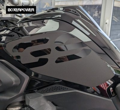 Speciaal op maat gesneden vormen voor de zijkanten (kneepads) van de tank van BMW R1250GS en de BMW R1200GS LC (2017-2019). Inclusief het uitgesneden GS logo. Set bestaat uit een linker en een rechter gedeelte, voorzien van montagefolie en montage-instructie via QR-code.