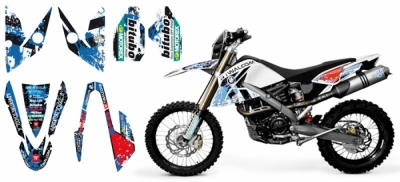 The TT® - Racing Graphics Set G650X is complete of graphics for the front fender to the right and left sides, for the coverage of the fork right and left and right and left rear plastic.