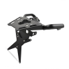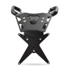 With our complete kit it is possible to replace the standard rear mudguard/license plate holder with an extremely more compact structure and with a decidedly sporty look, in full compliance with current regulations (30° approved inclination). In addition to this, the kit includes a very sturdy luggage rack plate, equipped with a right+left base fixed directly to the motorbike frame, it has been specifically designed with the aim of centralizing all the masses. This translates into greater stability and agility of the bike and less load transfer during braking and acceleration. The structure includes two solid and robust ergonomic handles which are extremely useful when moving the motorbike from a standstill.