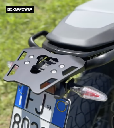 This very sturdy luggage rack plate, equipped with a DX+SX base fixed directly to the motorbike frame, has been specifically designed with the aim of centralizing all the masses. This translates into greater stability and agility of the motorcycle and less load transfer during braking and acceleration. The structure also includes two solid and robust ergonomic handles which are extremely useful when moving the motorbike from a standstill. The SPORT Base + Luggage Rack Plate system can be mounted on all configurations of the R1300GS, including those with radar and gives the new R1300GS a particular bold and sporty appearance.