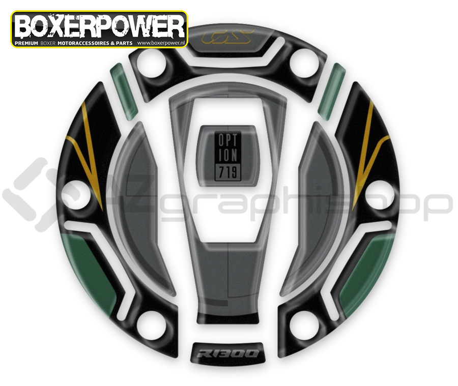 • R1300GS gas cap protection silver, domed beschermt tankrand en -klepje tegen corrosie