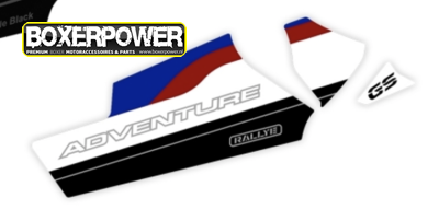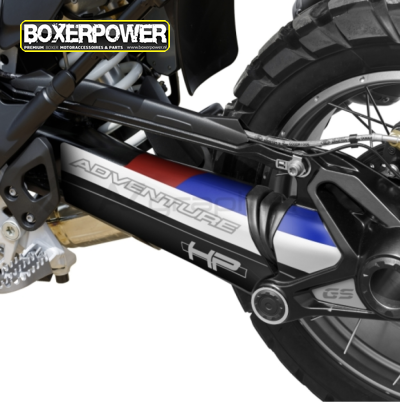 Cardan beschermingssticker / protectiesticker in de kleuren van BMW M-Motorsport / HPkleurstelling met de tekst ADVENTURE en in de zwarte striping is het HP logo/type-aanduiding opgenomen.