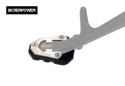 Door het kleine contactoppervlak van de originele zijstandaard / jiffy / zijpikkel / cameltoe bestaat het gevaar dat deze langzaam en vaak ongemerkt wegzakt, zowel op hete geasfalteerde oppervlakken als op licht zachte onstabiele ondergrond, grind / grond / gras. Een nauwkeurig gevormde steunvergroting, die eenvoudig op de zijstandaard wordt geschroefd, kan dit gevaar aanzienlijk verkleinen. En om de kickstand gemakkelijk met de hak van de laars uit te klappen, hebben we een externe vertanding aangebracht. Italiaans design, uitgevoerd in zwart en RVS.