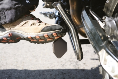 Additional insurance for the GS: fully loaded or on loose ground, a GS supported on the side stand can easily get bogged down.
