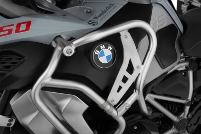 Our tank protection bar extension completes the protection for the flanks of the Adventure, reinforcing and perfecting it. This addition to the tight series standard tank protection bar on the R 1250 GS Adventure not only reliably protects the tank but the body too. It also gives the Adventure a striking and unique look.