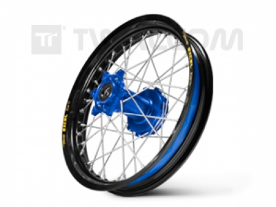 The complete wheel is composed of: Excel Takasago black rim, 36 spokes + nipples set (steel reinforced) - hub and rear sprocket plate (in conformity with the original, in Ergal machined by CNC - Electric Blu color, complete with inner spacer, bearings, rings seal and lock ring ) - assembly .