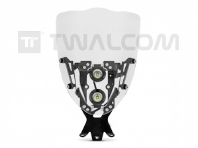 Led headlights ECE50.50R.00.0070 - The package includes: support frame in Peralluman anodized - Windscreen high thickness adjustable inclination height mm. 330 or alternatively mm. 380 - 2 single High Performance Super Slim LED headlights ø 50 (900/1100 lm - 10w - DC10-30v.) 25 ° width, 2 fixing / adjustment brackets, direction indicator supports (right + left), dedicated wiring "Made in Twalcom" plug and play ready for direct connection to the original Husqvarna connector, electrical mounting material and assembly instructions. Led headlight structure: in die-cast aluminum IP 68. Led spotlight dimensions: mm. 50 x 63 x 57. Led headlight weight: gr. 200 cad. Total weight: gr. 1,150.