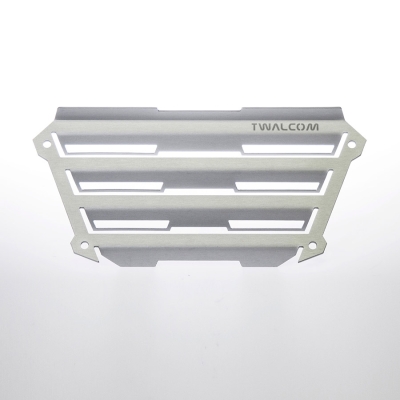 De door TWALCOM ontworpen en vervaardigde beschermplaat is niet alleen speciaal ontworpen om het open gedeelte van de motorplaat te beschermen tegen modder en stenen, maar ook en vooral om de luchtstroom binnen het "gesloten" gebied van de 790 Adventure.