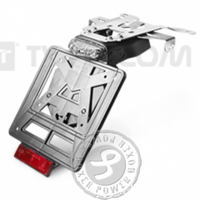 Complete LED achterlicht unit met kentekenplaat houder, framebevestiging in INOX / RVS en rode reflector.