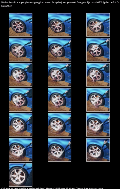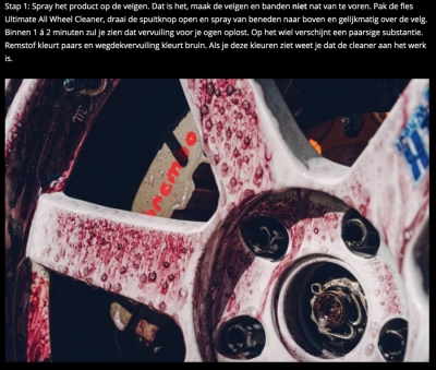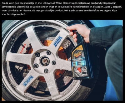 Meguiar’s® Ultimate All Wheel Cleaner is onze meest krachtige velgenreiniger en is veilig voor elk type velg, ook voor motoren! Deze geavanceerde formule reinigt wegdekvervuiling en lost hardnekkig vastzittende remstof op. De actief reinigende gel formule laat remstof paars kleuren en wegdekvervuiling wordt bruin van kleur. Aangezien deze formule geen zuur bevat en pH neutraal is kan deze velgenreiniger gebruikt worden op elk type velg en aftermarket remsysteem.