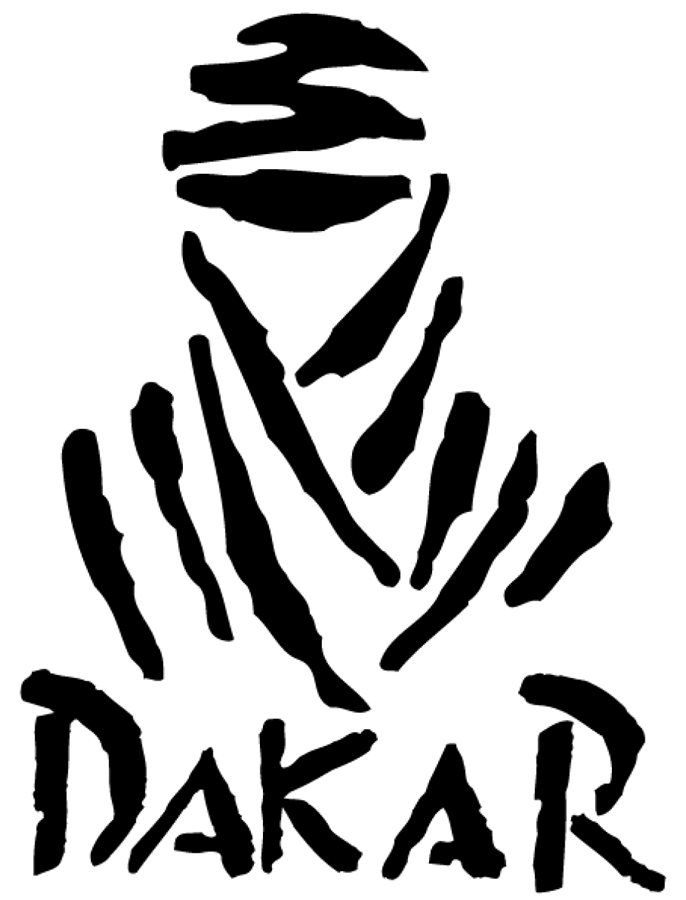 Hoogwaardige ZWARTE, maar in donker WIT reflecterende sticker met afbeelding TOUAREG of NOMAD en tekst DAKAR.