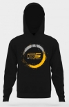 Mooie hoodie, zwart met lange mouwen en capuchon. 65% polyester, 35% katoen; deze samenstelling betekent comfortabel dragen en de hoodie behoudt zijn uitstekende pasvorm en verkleurt veel minder dan een geheel katoenen shirt. Keurig afgewerkt, opdruk is in zeefdruk gemaakt, dus duurzaam. de gebruikte kleuren zijn zilver en goud-geel.