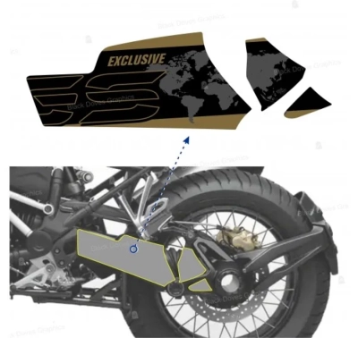 Cardan beschermingssticker / protectiesticker in de kleuren van BMW R1250 GSA Exclusive, met GS logo in outline en wereldkaart