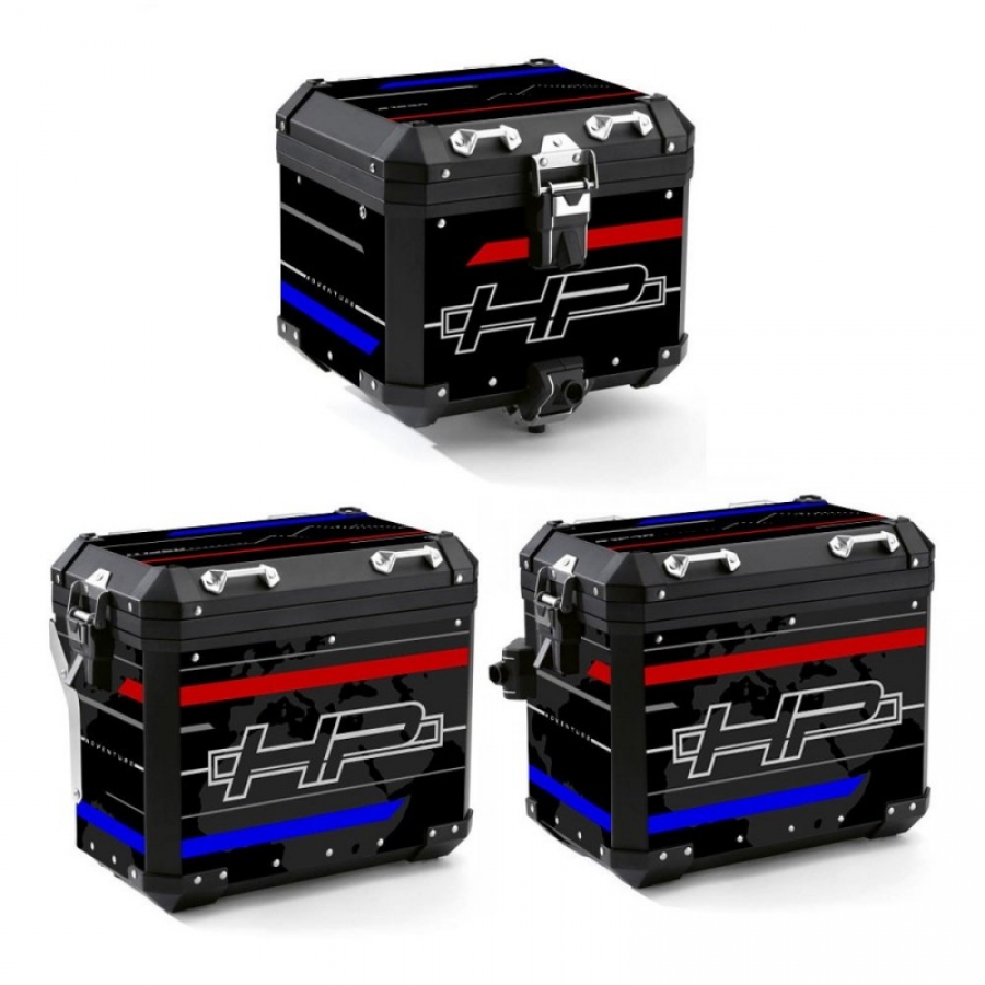Heel fraai, deze complete set kofferstickers voor de aluminium adventure koffers van BMW.