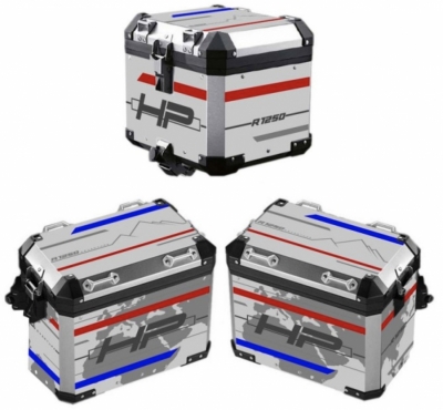 Heel fraai, deze complete set kofferstickers voor de aluminium adventure koffers van BMW.