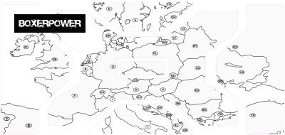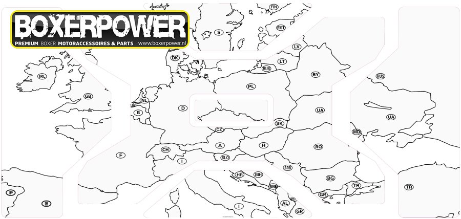 Voorzien van een print met een deel van midden Europa van de wereldkaart, waar ook Nederland en de ons omringende landen op afgebeeld staan. De landen worden door middel van de internationale landencodes weer gegeven.