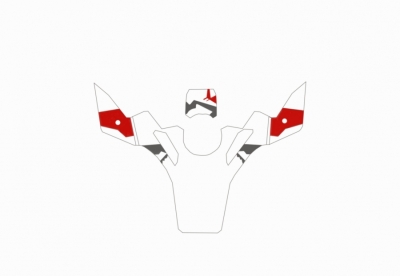 Compleet set van voorgemonteerde losse stickers, die je heel eenvoudig zelf kunt monteren op de bovenste gelakte kunststof delen van de tankcover van je R1200GSA.
