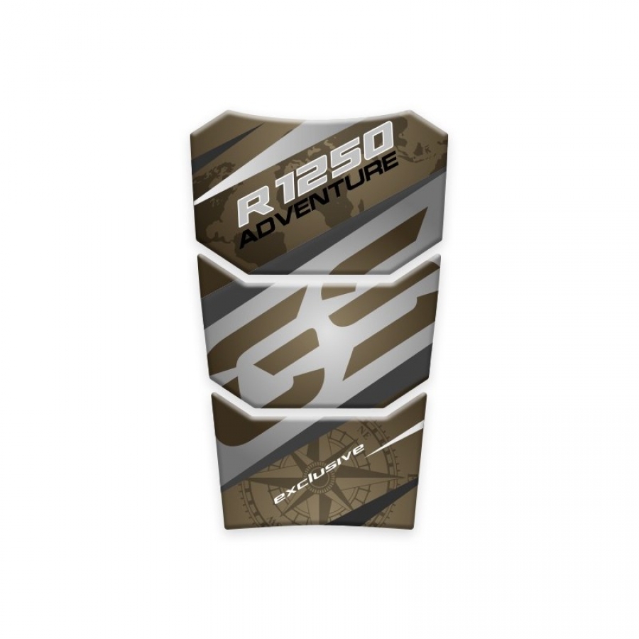 Tankpad / Protector BMW R1200GSA Exclusive met de letters GS, tekst R1250 Adventure Exclusive en kompas.De kleuren komt zo veel mogelijk overeen met de kleuren van de R1250 GS Adventure Exclusive/