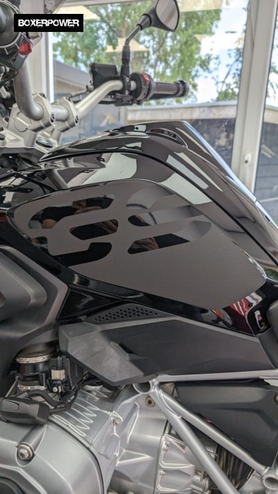 Speciaal op maat gesneden vormen voor de zijkanten (kneepads) van de tank van BMW R1250GS en de BMW R1200GS LC (2017-2019). Inclusief het uitgesneden GS logo. Set bestaat uit een linker en een rechter gedeelte, voorzien van montagefolie en montage-instructie via QR-code.